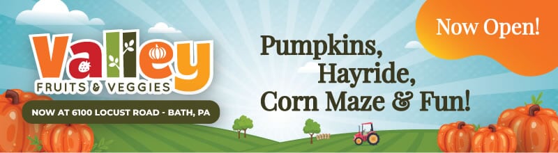 Valley Fruits & Veggies is the best Fall Family Fun Farm in the Lehigh Valley! Our free hayride will take you up to the pumpkin patch where you will find thousands of pumpkins to pick from. Ge... -